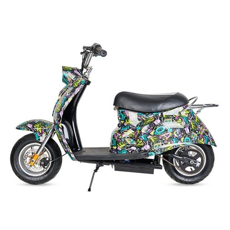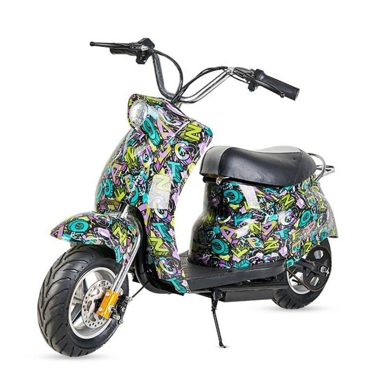 La conception du petit scooter est similaire à celle d’un grand scooter. Il intègre un siège rembourré qui devient en même temps un coffre. Les roues sont plus grandes et plus solides en raison de la composition du vélo, vous vous sentirez comme un vrai pilote.